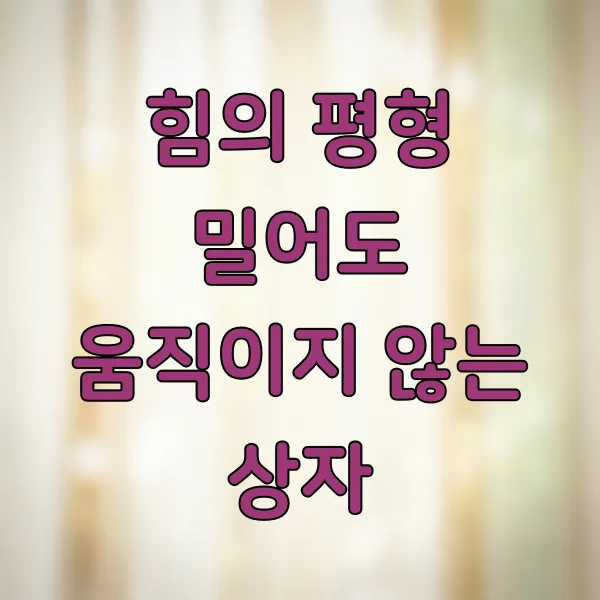 분명 힘껏 밀고 있는데, 상자가 꿈쩍도 안 한다고요? 마치 벽이라도 붙어 있는 것처럼 말이죠. 이런 경험, 다들 한 번쯤 해봤을 겁니다. 애만 쓰고 힘만 빼는 것 같아 답답하기까지 한데요. 사실 이 움직이지 않는 상자 안에는 우리 주변 어디에나 존재하는 '힘의 평형'이라는 아주 흥미로운 과학 원리가 숨어있거든요. 오늘은 왜 우리가 밀어도 상자가 움직이지 않는 건지, 그 속에 담긴 과학적 비밀을 파헤쳐 보겠습니다.